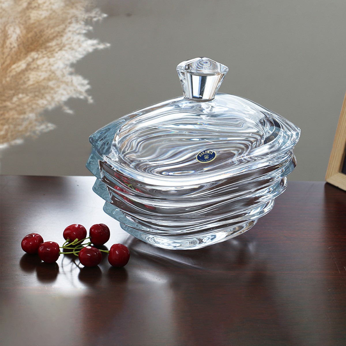 Realizata din sticla de inalta calitate, aceasta bomboniera de la Bohemia are o forma alungita si un decor vibrant, fiind perfecta pentru a pastra bomboane, dulciuri sau mici obiecte pretioase.