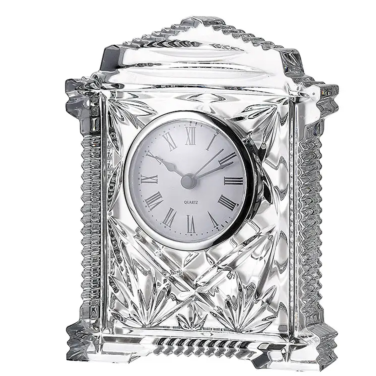 Acest ceas de masa din Cristal Bohemia, cu o inaltime de 16 cm, este o piesa decorativa deosebita, ce imbina functionalitatea unui ceas precis cu frumusetea atemporala a cristalului de cea mai inalta calitate.