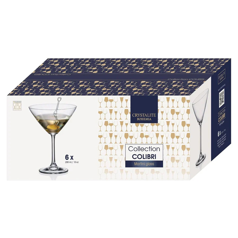 Setul de pahare Martini Bohemia Colibri 280 ml se remarca printr-un design simplu si elegant, potrivit pentru servirea martini-ului, cocktailurilor sau chiar inghetatei.