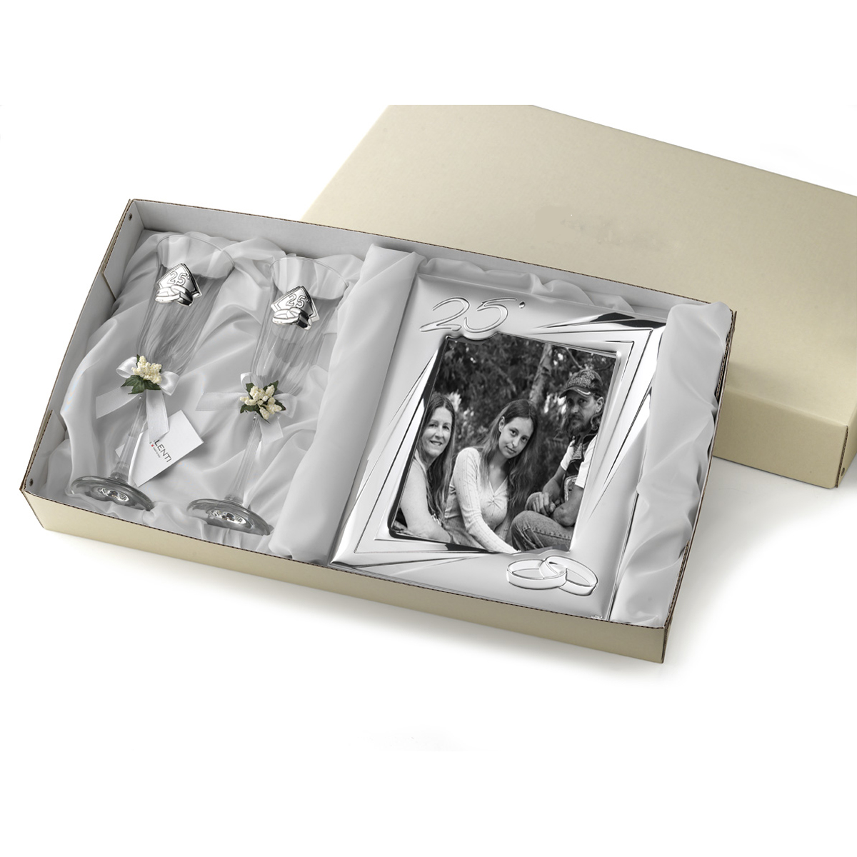 Pahare Sampanie Aniversare 25 Ani Casatorie + Rama Foto Argint