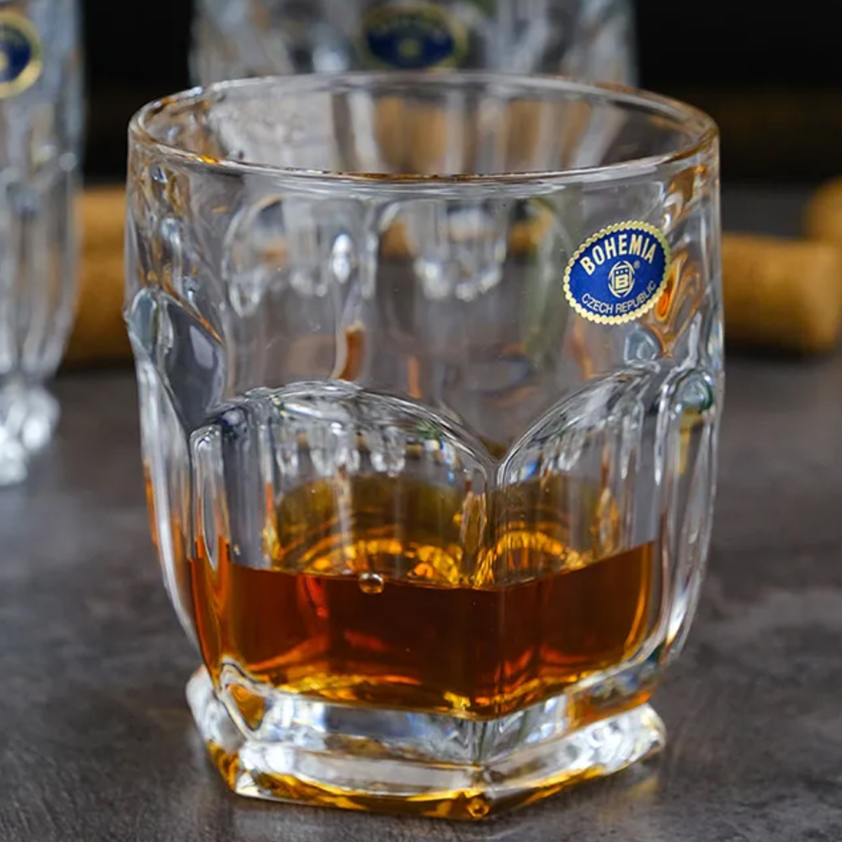 Aceste pahare de whisky se disting prin detalii subtile care reflecta eleganta specifica brandului Bohemia, recunoscut pentru excelenta sa in fabricarea produselor din sticla de lux.