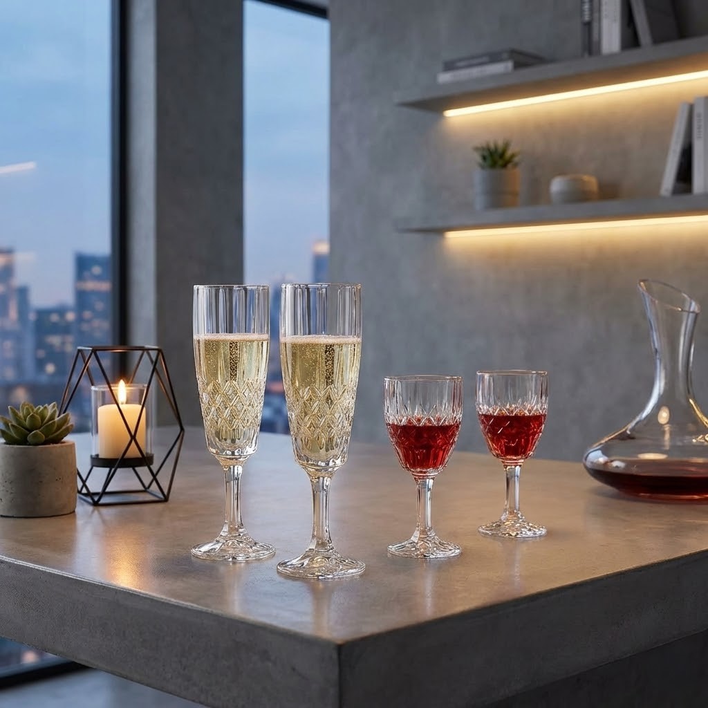 Alege acets set 12 Pahare din Cristal de Bohemia Angela: 6 pahare sampanie 160 ml si 6 pahare aperitiv 100 ml. Cristal 24% PbO, cutie cadou eleganta.