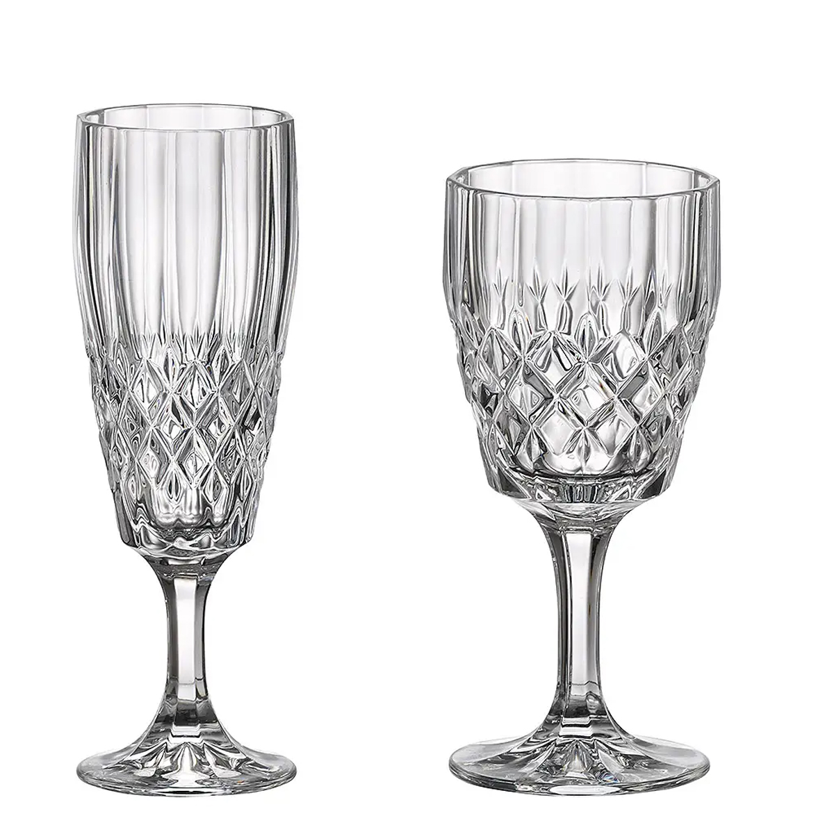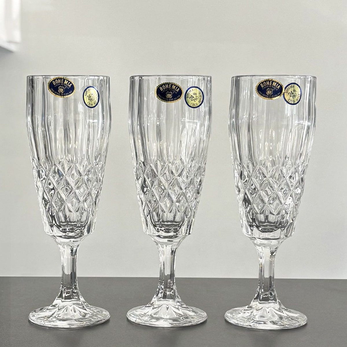 Paharele din colectia Angela sunt realizate din cristal Bohemia cu 24% PbO, un material apreciat pentru claritatea sa si pentru aspectul premium pe care il ofera in orice decor. Paharele de sampanie de 160 ml sunt potrivite pentru sampanie, prosecco sau spumant, iar paharele de vin de 200 ml sunt ideale pentru portii echilibrate de vin alb sau rosu, mai ales atunci cand vrei o servire fina si controlata.