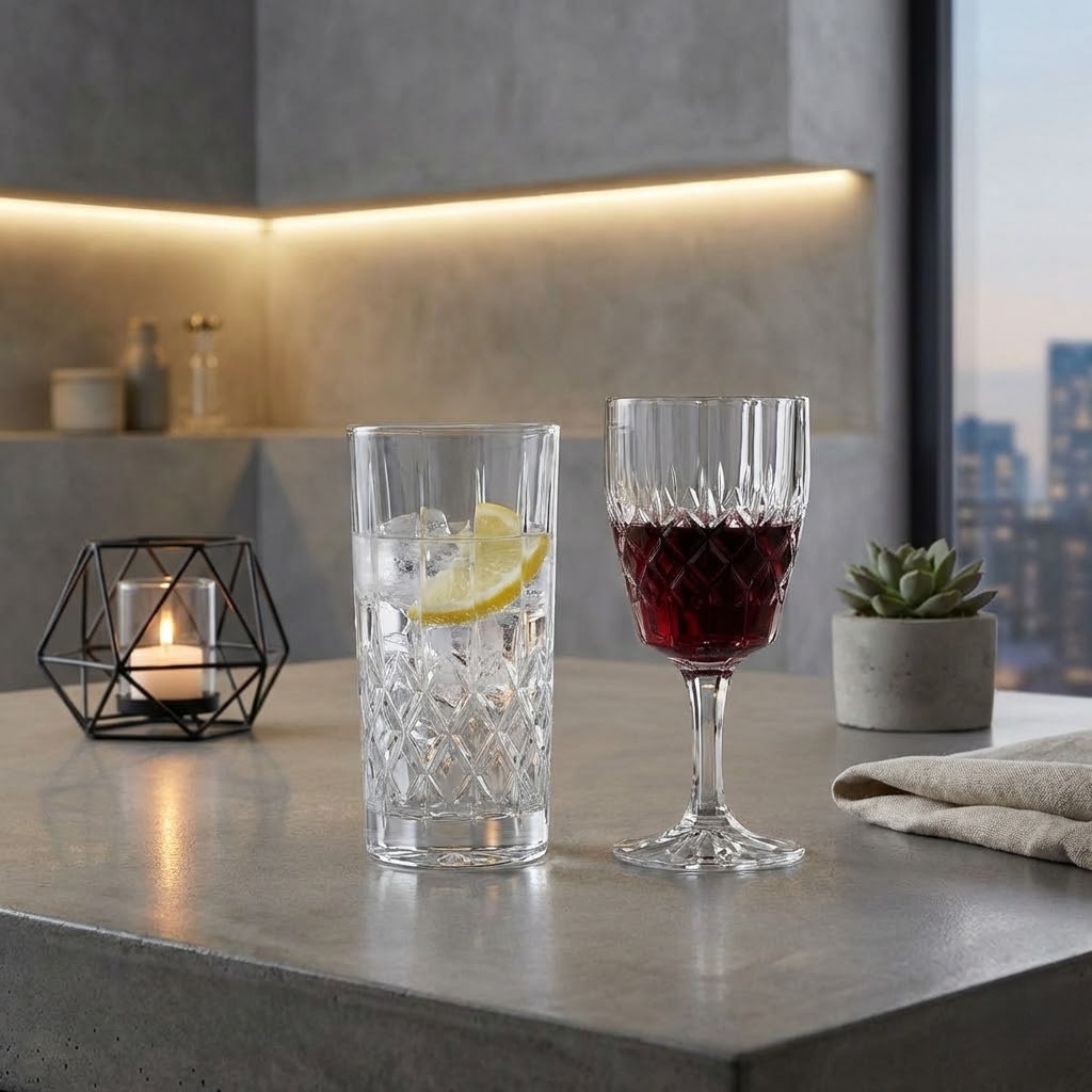 Paharele de apa sunt potrivite pentru apa, sucuri sau limonada, iar cele de vin pot fi folosite pentru vin alb, vin roze sau portii echilibrate de vin rosu.