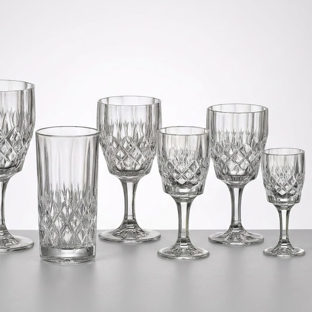 Setul de 24 Pahare Cristal Bohemia Angela este un pachet gandit pentru servire completa, cu pahare diferite pentru bauturi diferite, toate in acelasi stil. Setul are 24 bucati si este impartit in 4 modele, cate 6 pahare din fiecare, ceea ce il face usor de folosit atunci cand vrei o masa aranjata unitar.