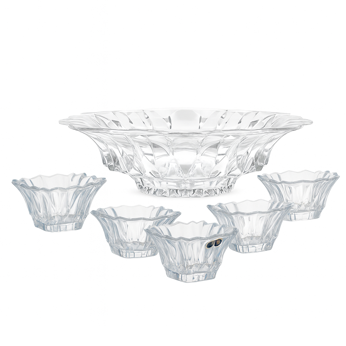 Cele 6 boluri de 13 cm sunt ideale pentru deserturi, inghetata, fructe sau aperitive, iar bolul central de 33 cm completeaza perfect setul pentru servire festiva.