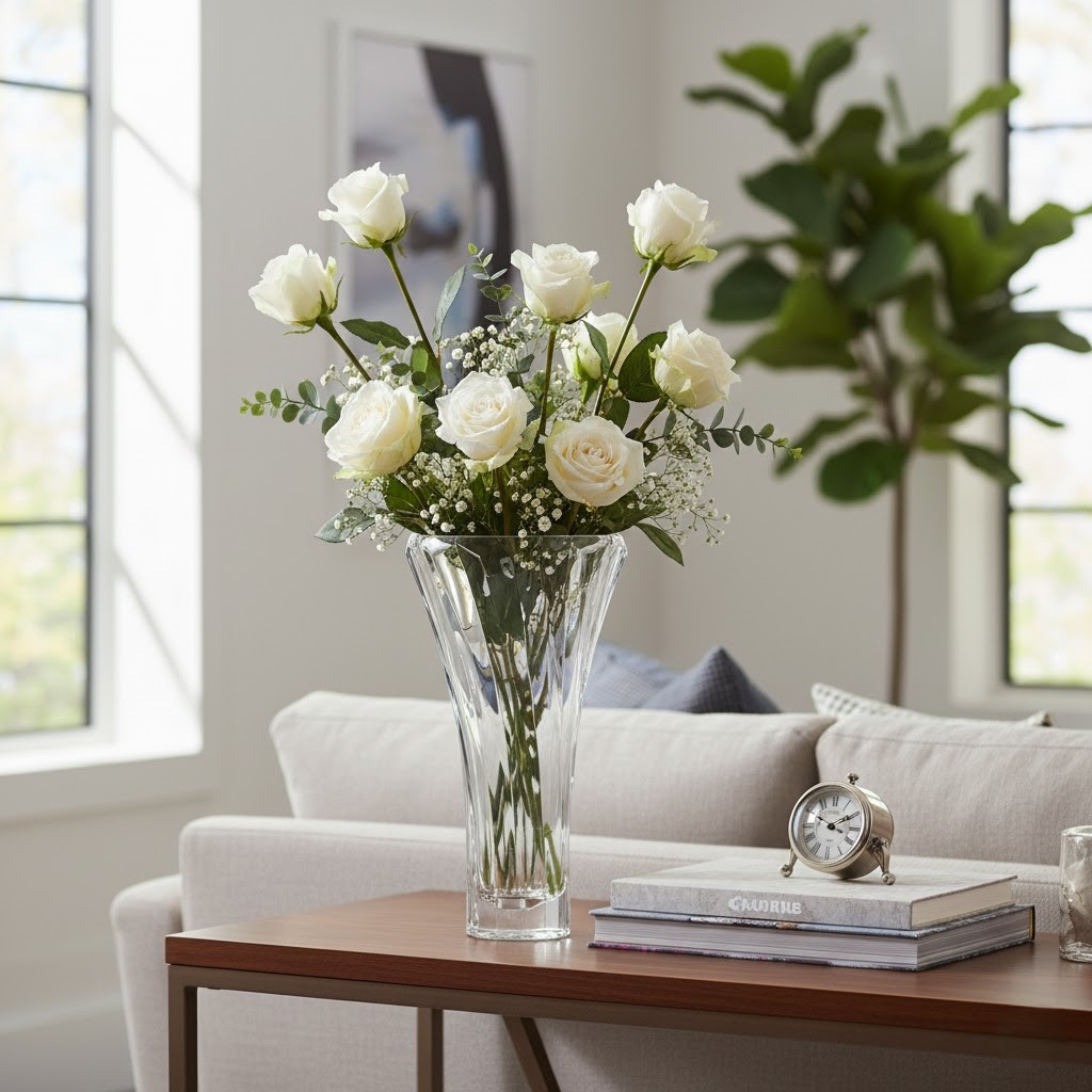 Dimensiunea generoasa este potrivita pentru aranjamente florale ample, oferind stabilitate si un punct focal atractiv.